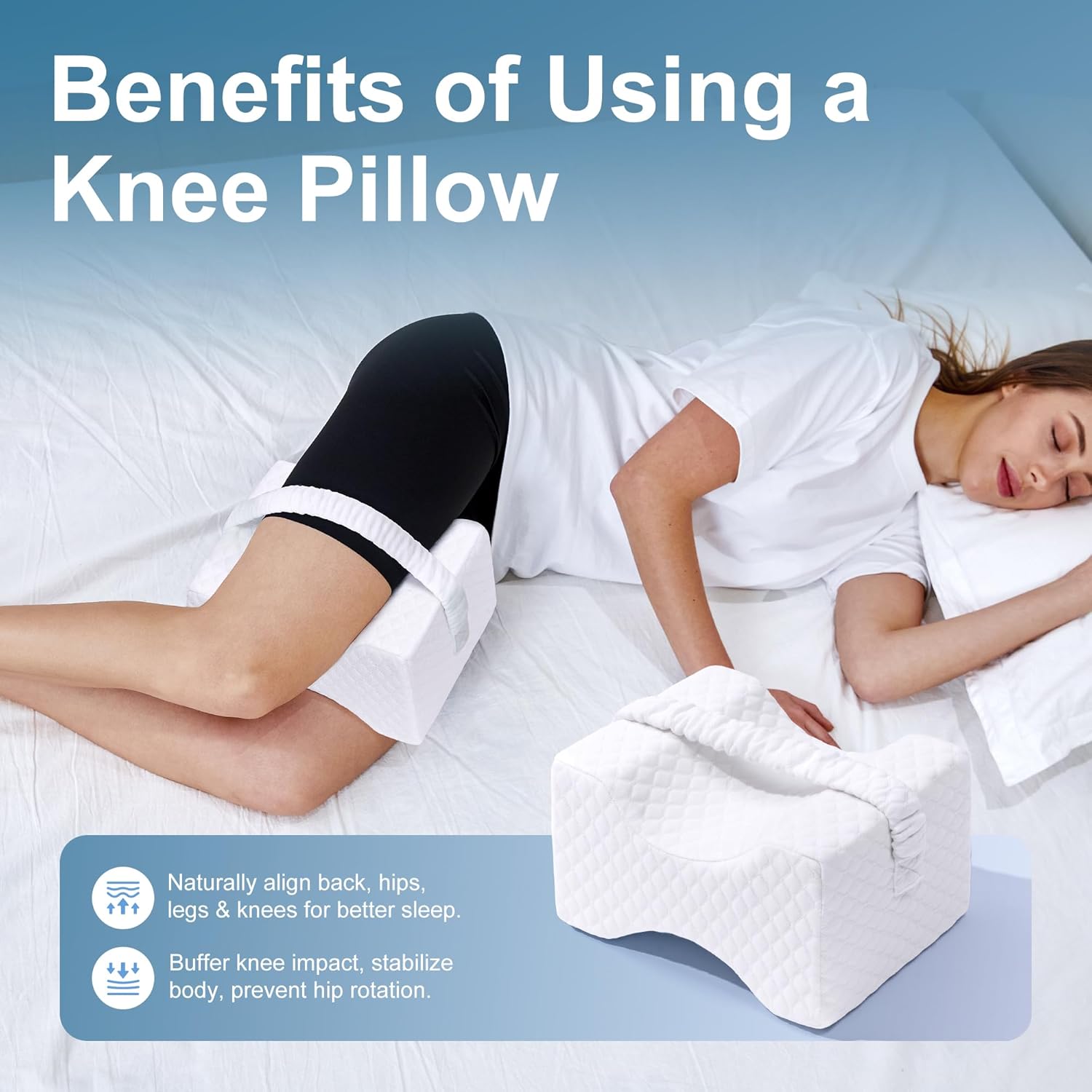- ORTHOPEDIC KNEE PILLOW FOR SIDE SLEEPERS – RELIEVES PRESSURE & PROMOTES ALIGNMENT: Sleeping on your side can cause your top leg to pull downward, twisting your hips and pressing your knees together. This leg pillow for side sleeping is designed to keep your spine, hips, and legs in alignment, helping reduce strain, pressure, and discomfort in your lower body. Use nightly as a sciatica pain relief pillow, hip pillow, or knee wedge pillow between legs to support natural rest for sore muscles