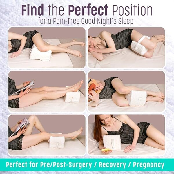 - REMOVABLE WASHABLE COVER & MULTI-USE SUPPORT: The breathable cover is removable and machine washable for fresh use every night. This versatile leg pillow can also be used as a knee cushion for lounging, a spacer pillow for recovery, or a comfort aid during pregnancy. Whether you’re a side sleeper seeking better posture, experiencing hip or knee tension during slumber, or looking for a supportive sciatica nerve pillow, this cushion provides all-night comfort and alignment without brace use.